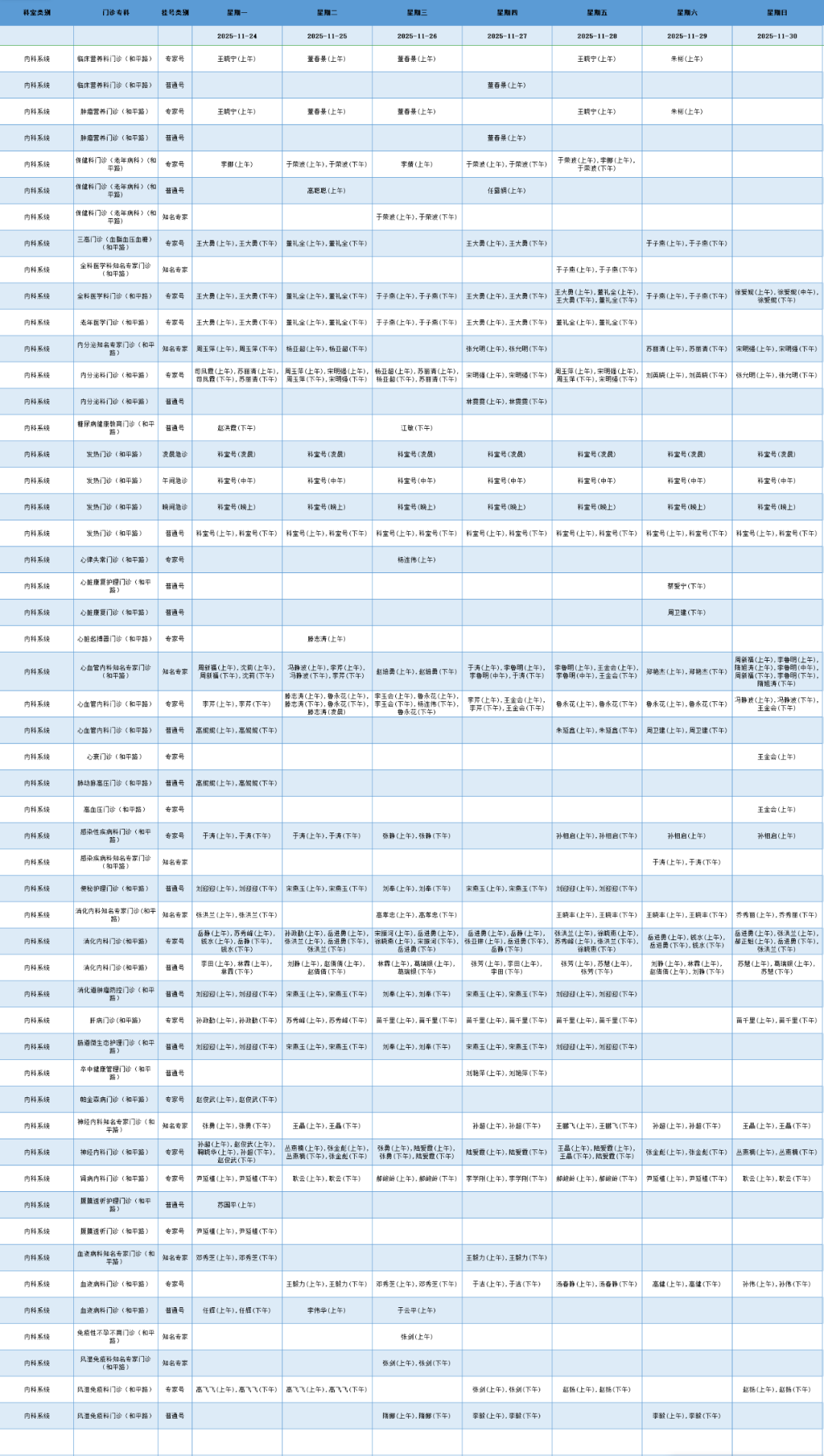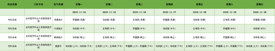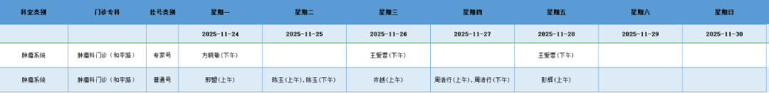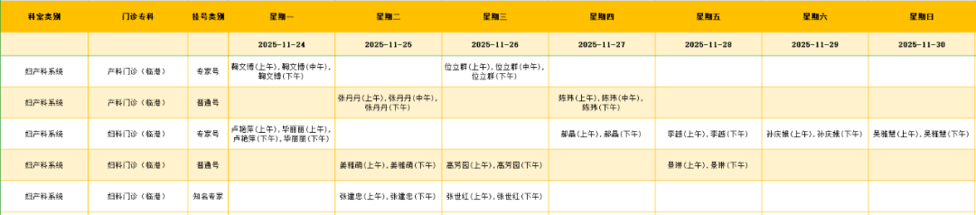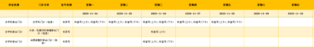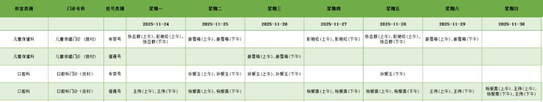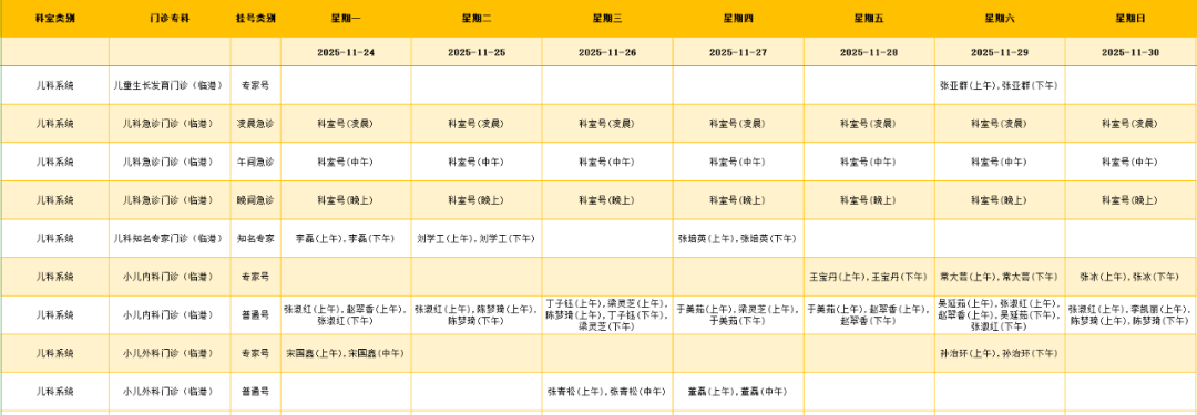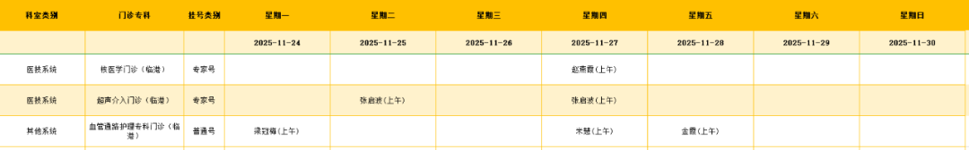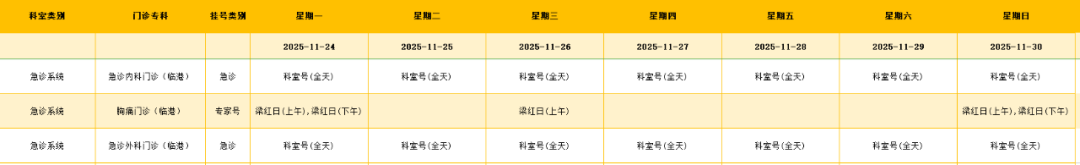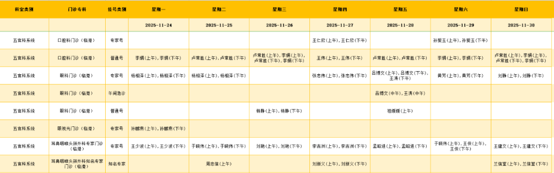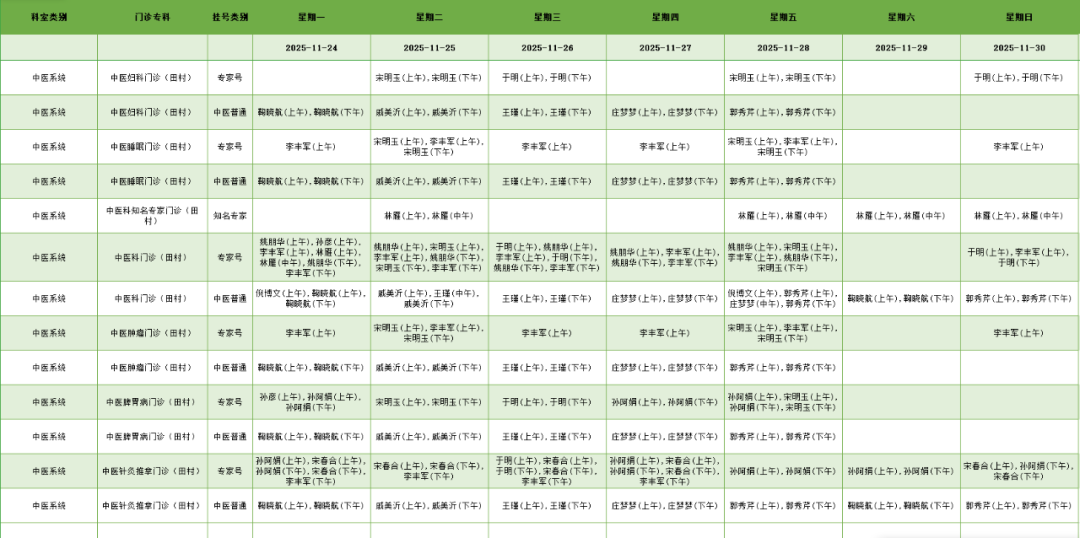 和平路院区心理、皮肤、医疗美容系统门诊排班表