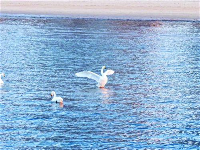 九龙湾海域柔情脉脉,早已成为大天鹅越冬的理想栖息地。对生存环境极为挑剔的大天鹅的到来,正是这里水质持续提升、生态不断优化的最佳佐证。从最初的“三口之家”到如今的集群栖息,九龙湾用诚意与守护,让“天鹅进城”成为威海冬日里一抹动人的风景。