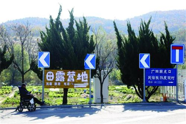 走进崮山镇南虎口村,4块崭新的路牌格外醒目。标注着“南虎口民宿街”的蓝色路牌上,拼音、方向箭头等表示一应俱全,路牌下方还标注了度假村、露营地等旅游标识。