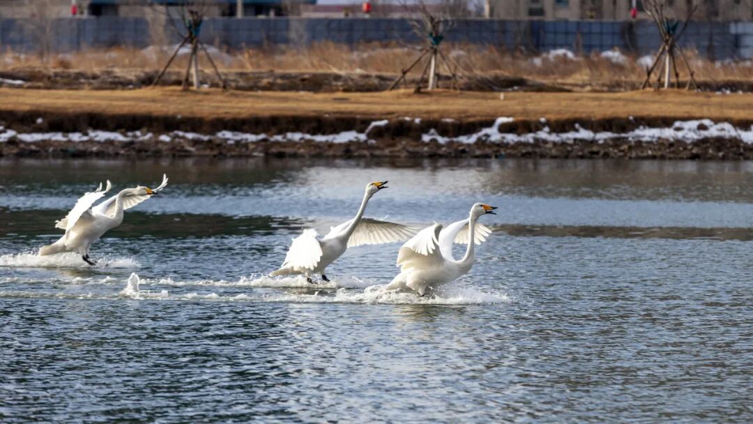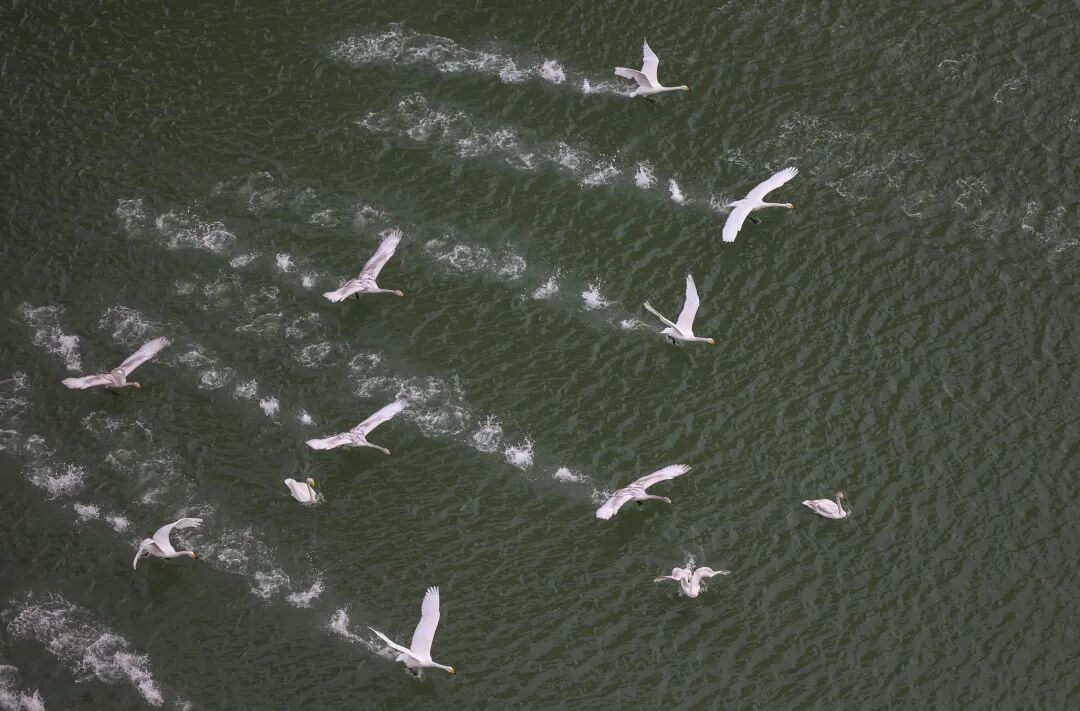 千余只精灵同时现身,它们成群结队,在晨光与暮色中翩跹起舞,其规模之宏大,场面之壮观,实属罕见。洁白的羽翼几乎覆盖了部分湖面,此起彼伏的鸣叫奏响着冬日最富生命力的交响乐章。