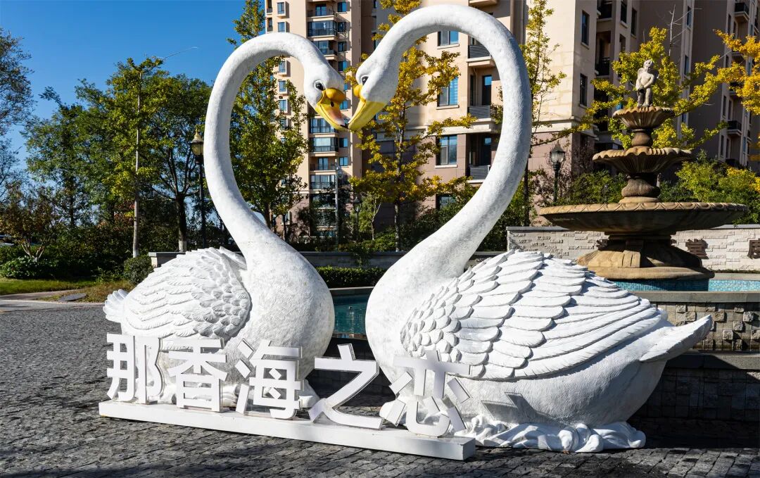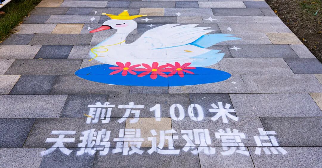 为了丰富您的观鹅行程,那香海于天鹅湖沿岸准备了诸多指示牌与美陈,方便您前往湖边打卡拍照。