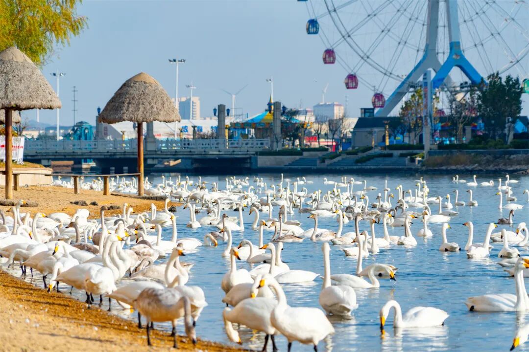 截止目前,那香海天鹅湖的天鹅已逾1300只,是荣成名副其实的赏天鹅胜地。