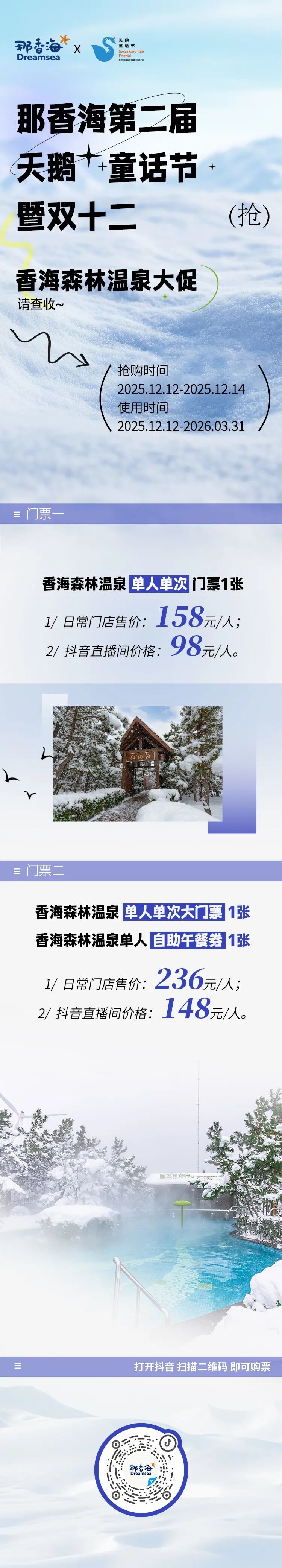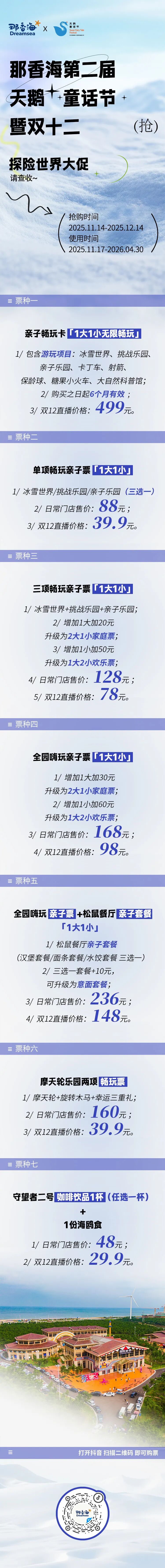 那香海还特意准备了十分优惠的套票、门票,趁着双十二到来,赶紧屯一波吧~