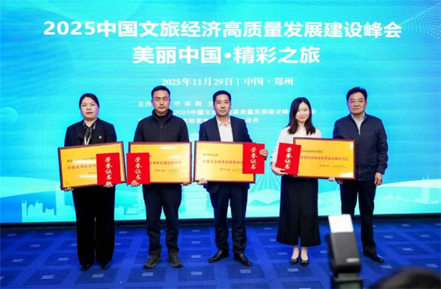11月29日,2025中国文旅经济高质量发展建设峰会在郑州举办,环翠区被授予“中国文旅融合高质量发展示范区”和“中国特色自然景观旅游目的地”等两项荣誉称号。