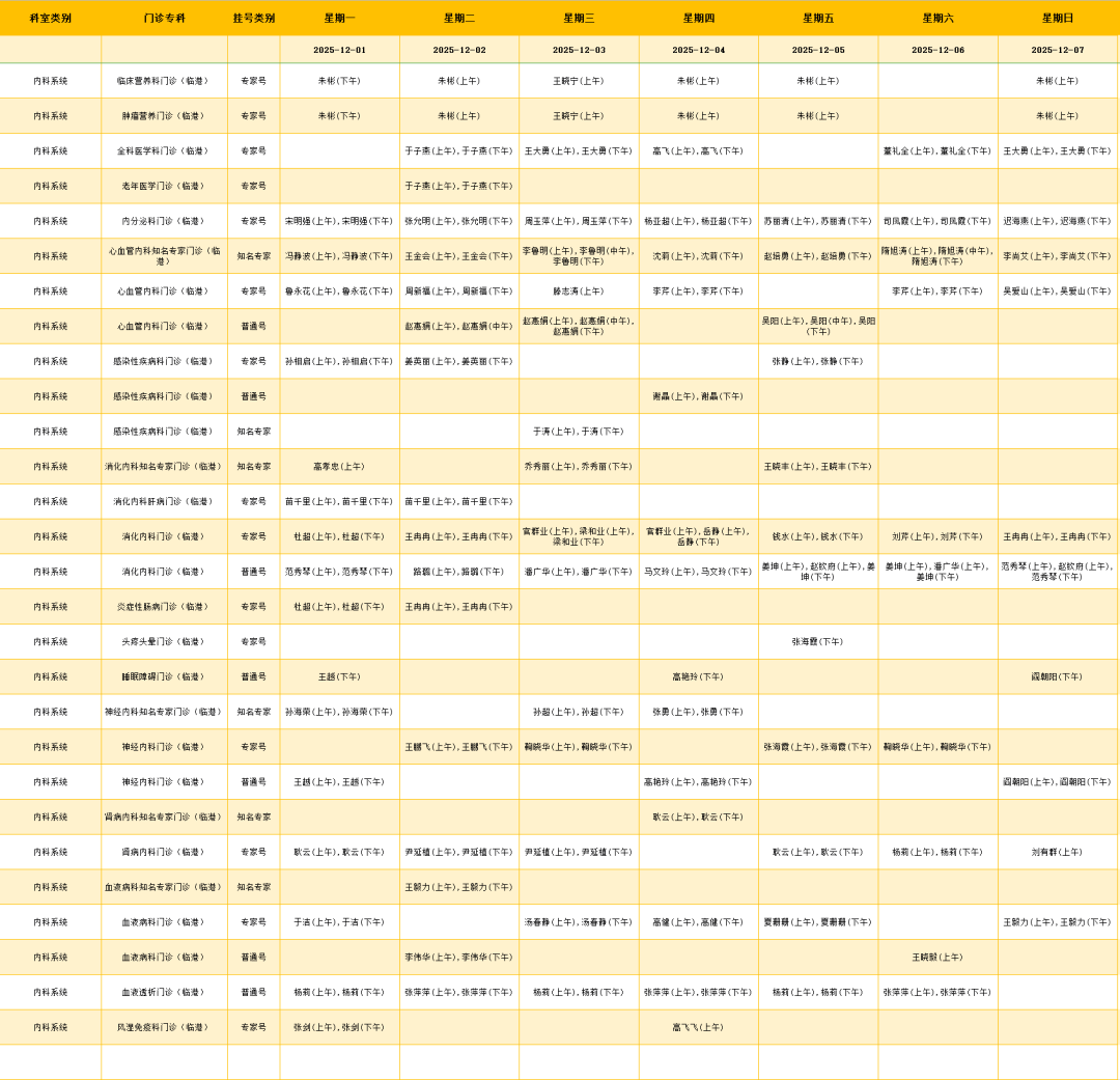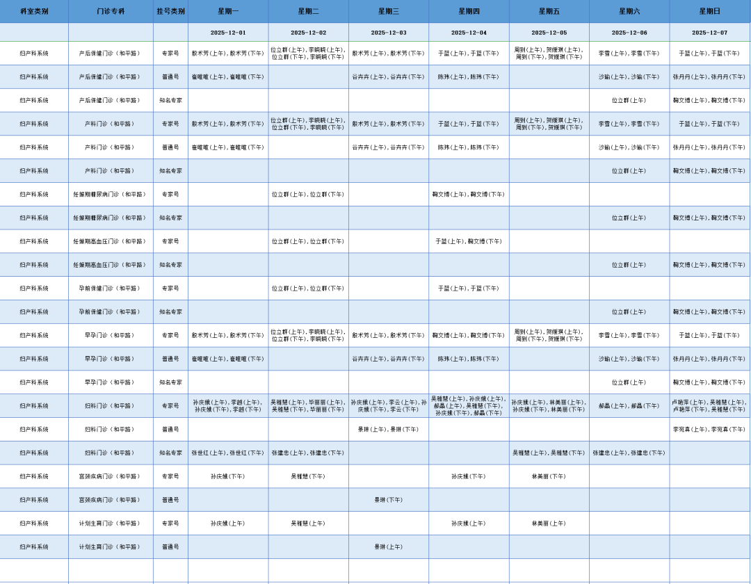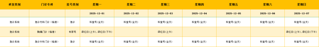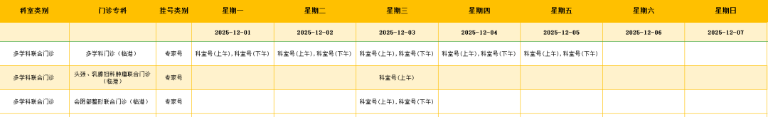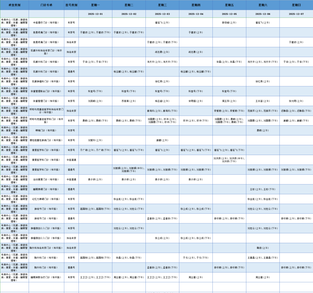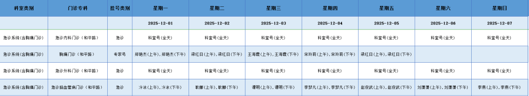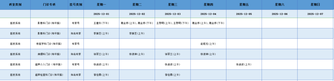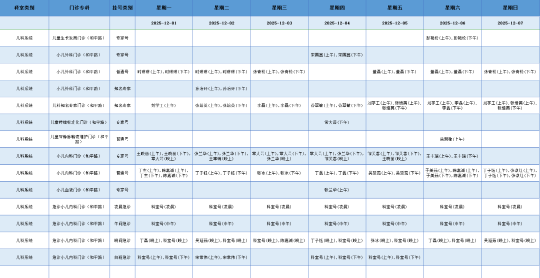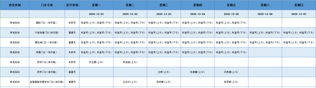 和平路院区心理、皮肤、医疗美容系统门诊排班表