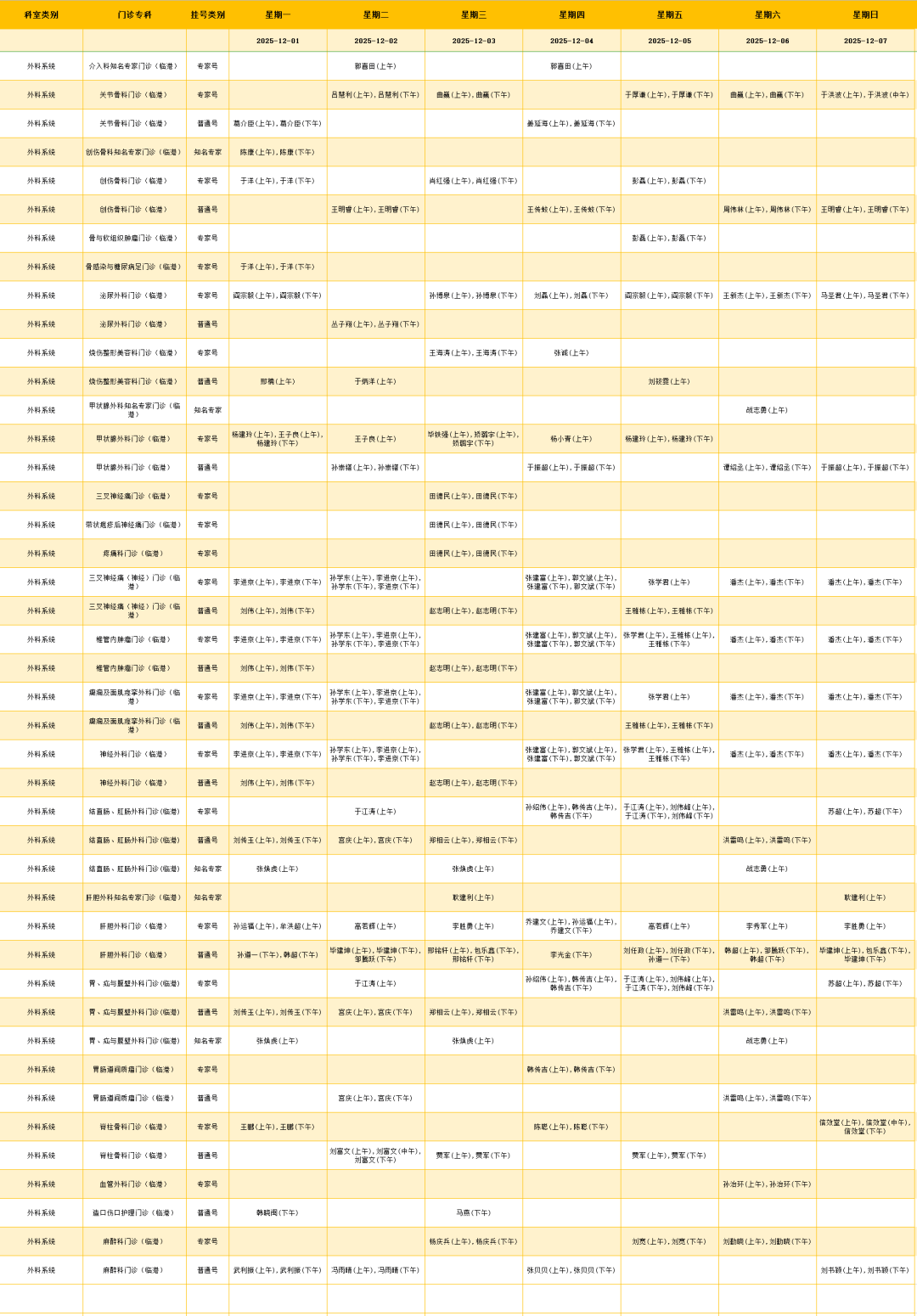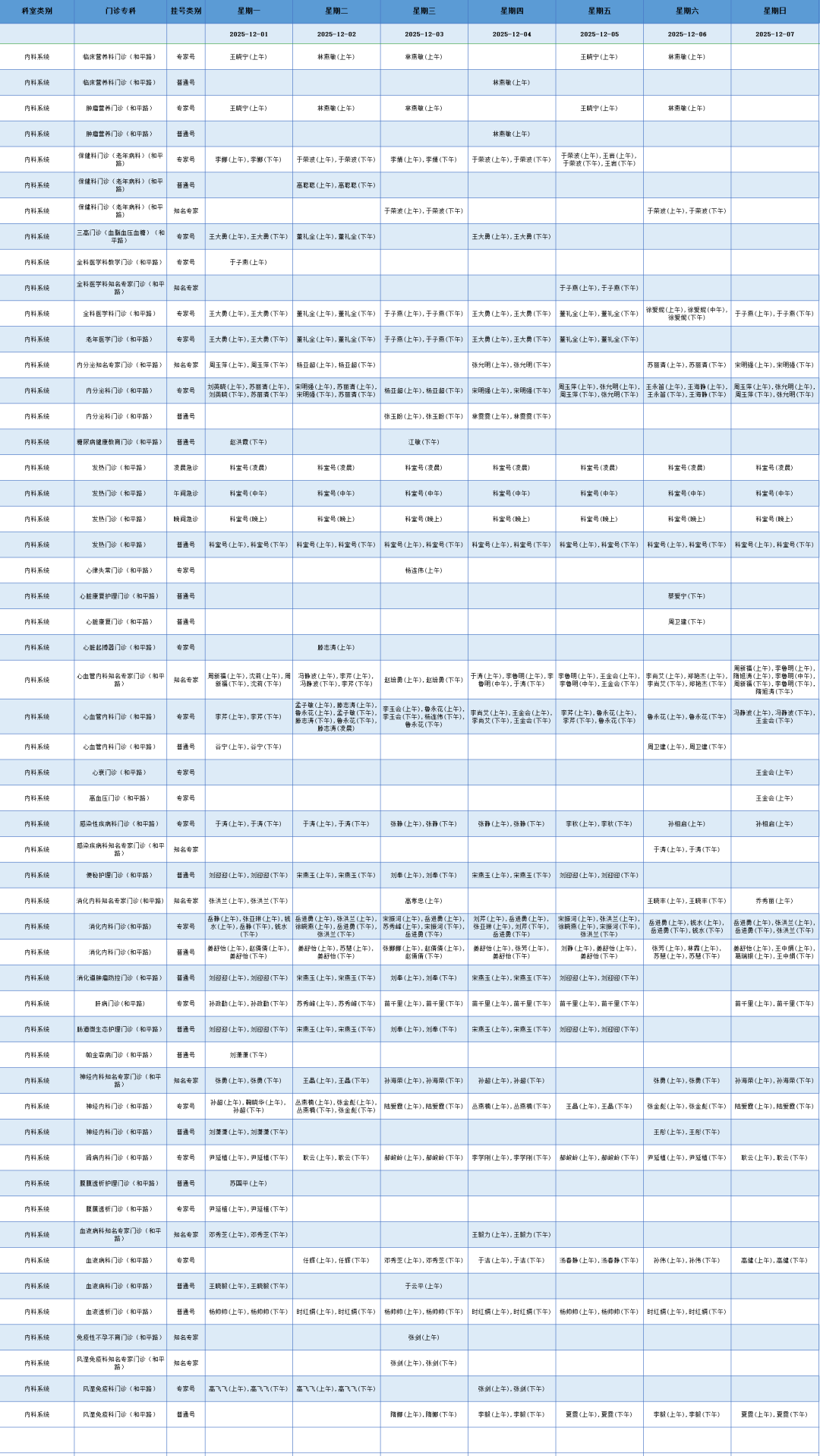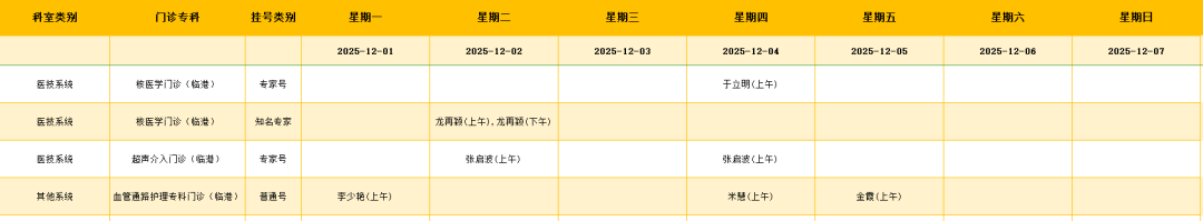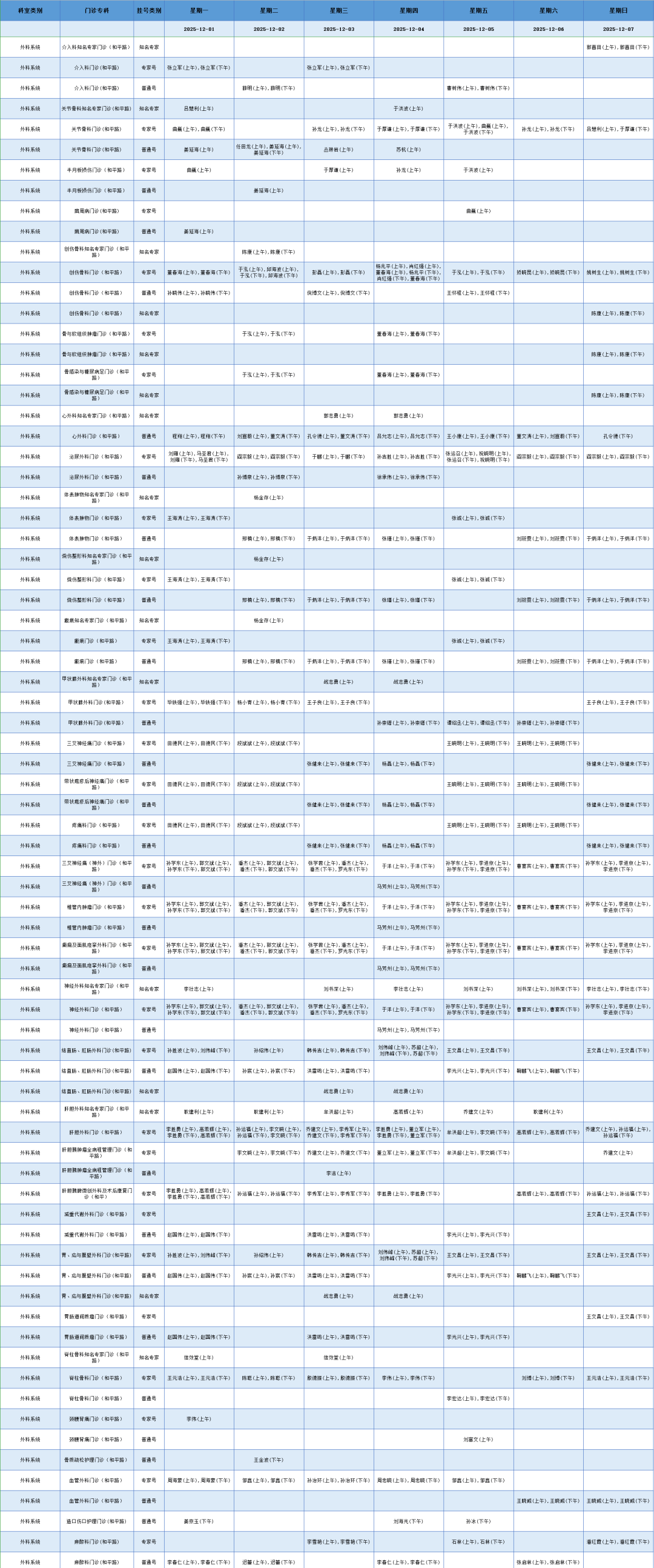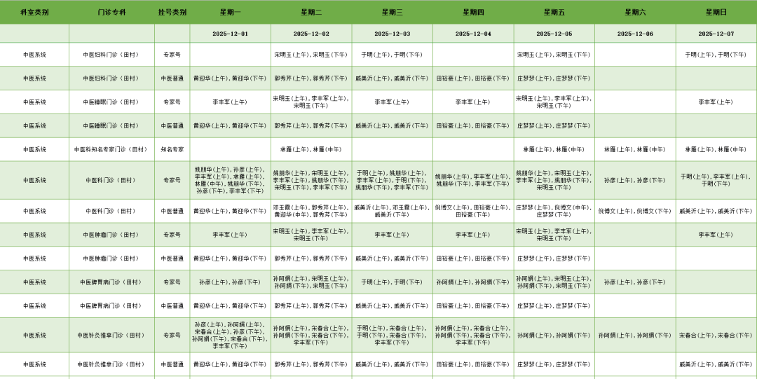 和平路院区心理、皮肤、医疗美容系统门诊排班表