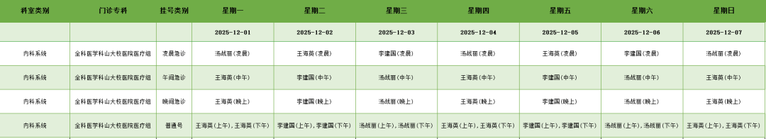2、医师出诊情况仅供参考,以当日挂号信息为准,如遇不可控因素导致医师换诊、停诊,敬请谅解。