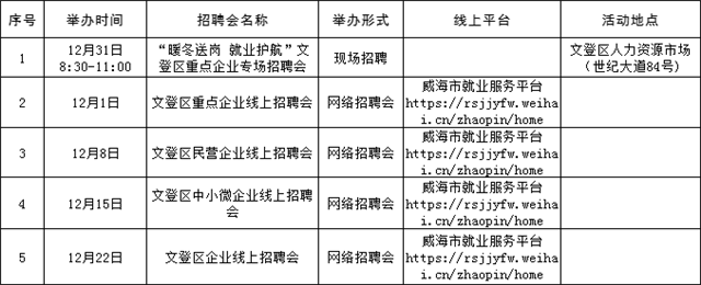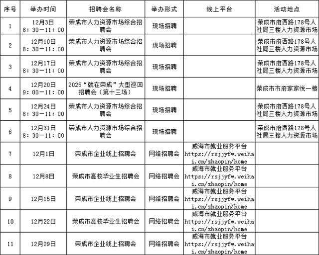 温馨提示:本公告内容为计划安排,请以各区市具体活动公告等信息为准,建议招聘单位和求职者提前电话咨询或留意相关公众号或网站公告。(来源:Hi威海客户端)