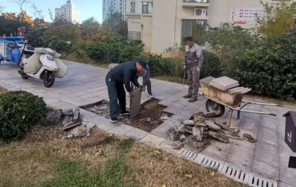 针对塌陷问题,维修先铺设钢管网后用水泥浇筑,最后铺设地砖。期间网格员及时跟进施工进度,并为居民耐心解释施工原因和施工进度,物业公司也加快采购和施工进度,最后仅用三天时间保质保量地完成所有施工工作。
