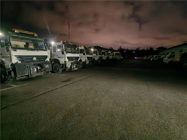 12月2日,降雪如期而至,高区市政严阵以待,除雪物资设备储备充足,130余台早已完成全面检修的撒布机、推雪铲、清运车等大型清雪设备整齐停放在指定场地,整装待发,为高强度清雪作业提供坚实物资支撑。