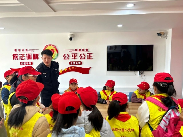 为进一步筑牢校园安全防线,切实增强少先队员的法治观念与自我保护能力,近日,荣成市石岛实验小学的少先队员们来到山海湾社区警务室,开展沉浸式安全教育活动。