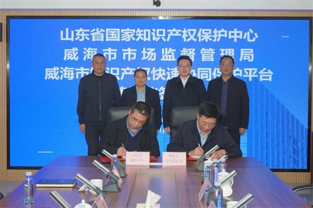 验收现场,山东省国家知识产权保护中心与威海市市场监督管理局签订《知识产权快速协同保护平台共建协议》,进一步夯实“省级中心+地方平台”协同保护体系。