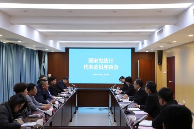 宣誓仪式后,受邀人大代表、政协委员、特邀监督员参观了威海市中级人民法院习近平法治思想文化墙,听取了威海市中级人民法院生动践行习近平法治思想的11个典型案例情况介绍。在代表委员座谈会上,威海市中级人民法院向代表委员通报了今年以来全市人民法院的工作情况。代表委员充分肯定了全市人民法院为经济社会高质量发展作出的贡献,也从加强调解员队伍建设、助力企业规范经营、信用修复、防范虚假诉讼等方面提出了意见建议。