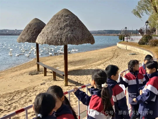 这个冬天,那香海苏外的孩子们,与千只天鹅共舞。他们的心中,从此住进了一片海,和一群飞越万里的、洁白的精灵。(来源:那香海景区)
