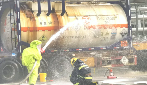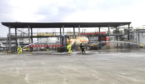 新险情出现,收集工具擦出火花,引燃泄漏的苯乙烯,烈焰升腾。现场总指挥当机立断,指挥消防组用现场消防设施对火势进行覆盖,同时安排人员向临港区消防、交警、应急等部门请求支援。经过多方协作配合,险情解除。各部门响应迅速、配合精密将“事故”牢牢控于萌芽。
