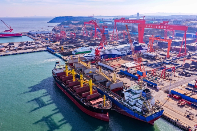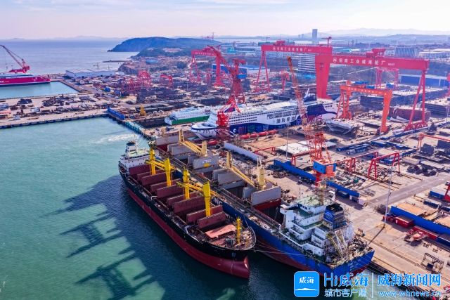 威海市招商工业威海船厂多艘大型船舶正在紧张建造中。