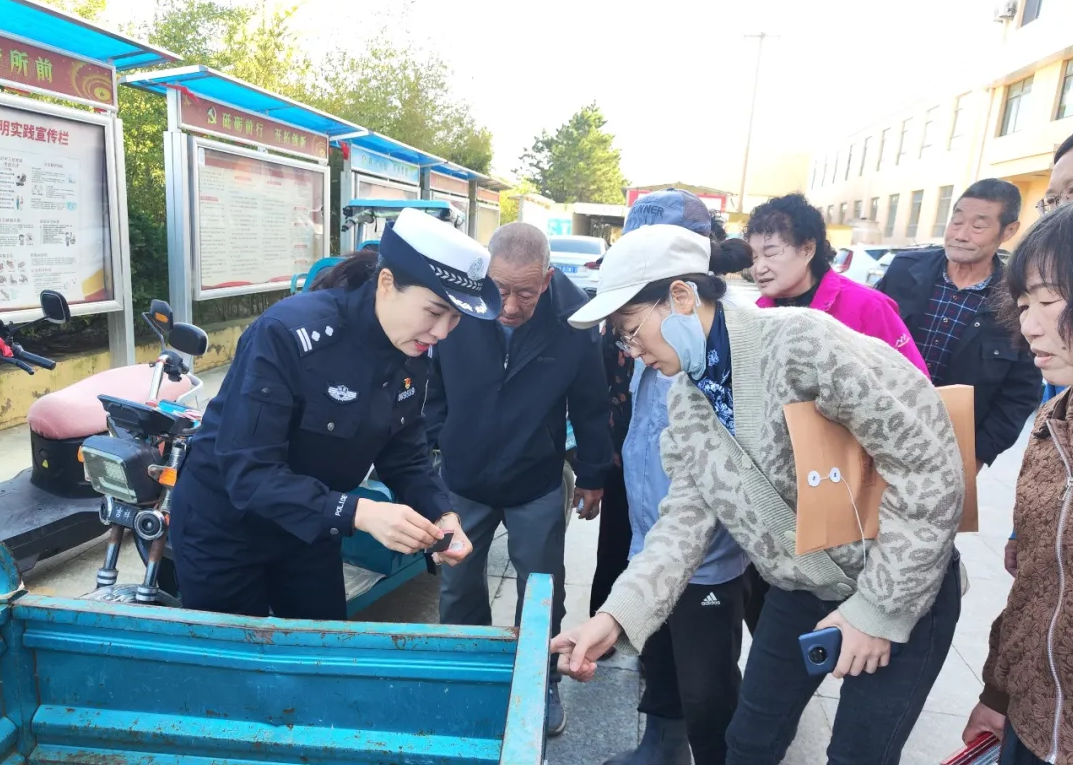 为切实提升群众交通安全意识,夯实道路安全基础,近日,崮山镇联合交警三大队走进所前庄股份经济合作社,开展接地气、有温度的交通安全宣教活动。活动现场,工作人员结合典型交通事故案例,用“身边事”警示“身边人”,直观讲解交通违法危害,引导群众自觉遵守交通法规、摒弃交通陋习。针对电动三轮车夜间出行辨识度低、安全风险高的问题,工作人员免费为村民车辆粘贴反光标识,以细微举措织密出行安全防护网。此次活动将安全知识送到家门口,用贴心服务守护群众出行安全,赢得村民广泛好评。