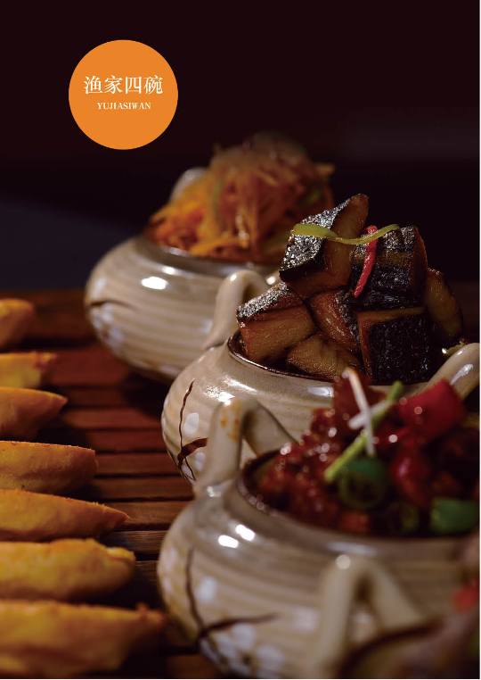 渔家人凡事图个吉利,讲究“四平八稳”,劳动之余,将鱼、肉、菜、鸡蛋等原料烹制的四道小菜摆上餐桌,喝着小酒,就着滋味鲜美的小菜,吃着金灿灿的粑粑,心情特别愉悦和幸福。