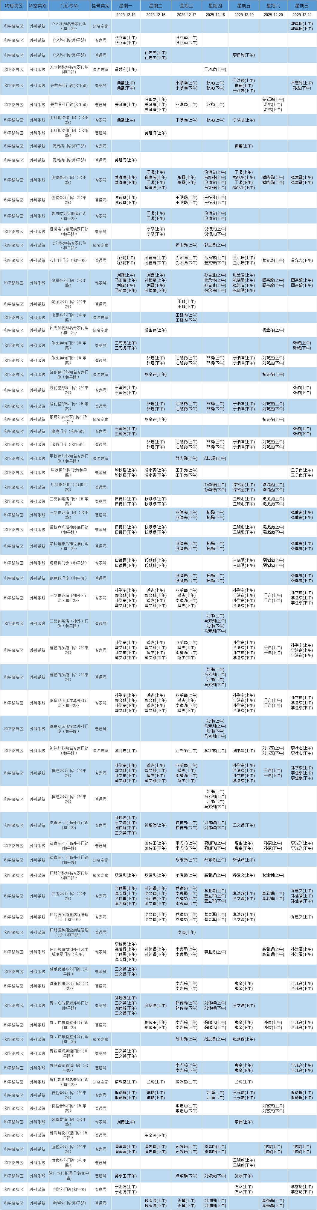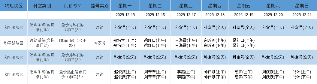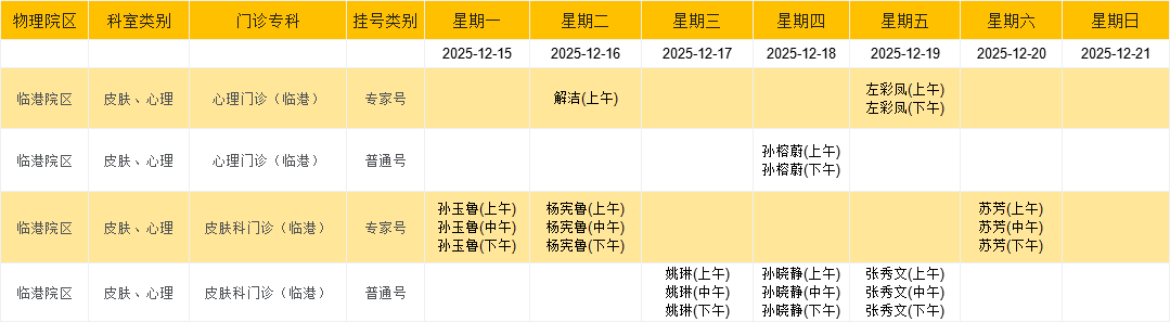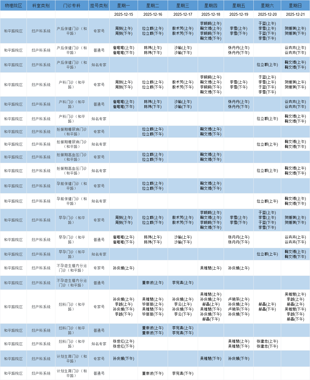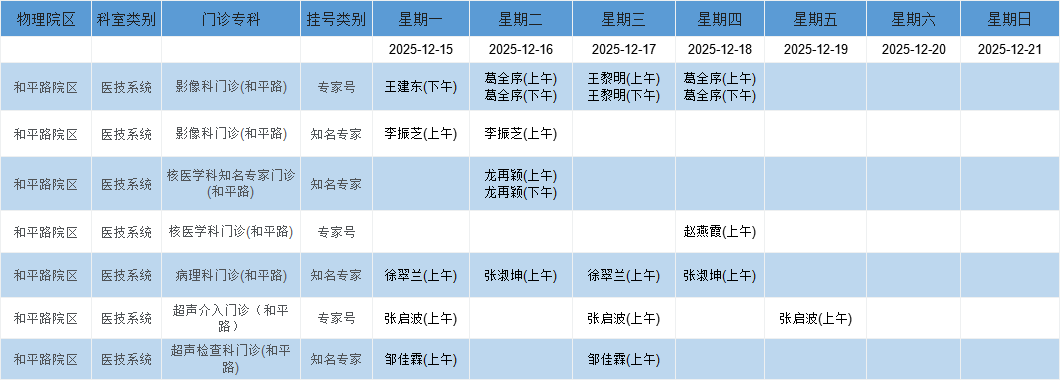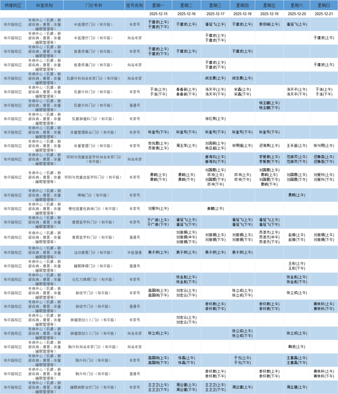 和平路院区心理、皮肤、医疗美容系统门诊排班表