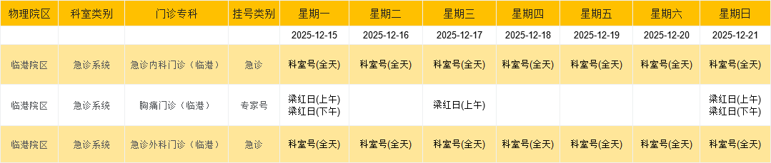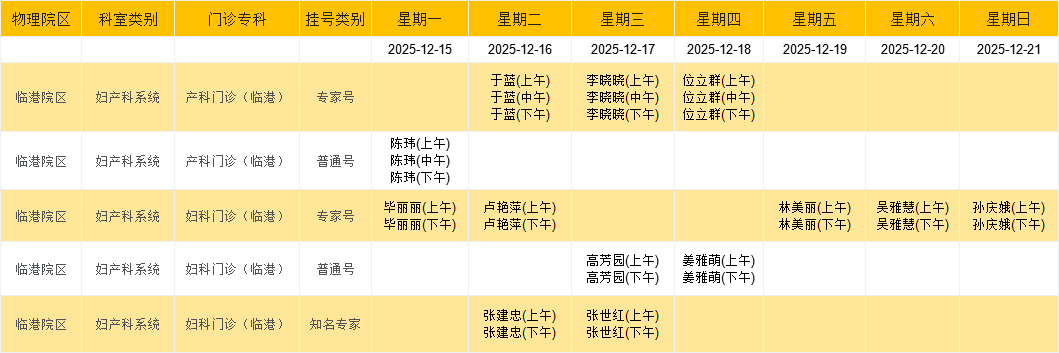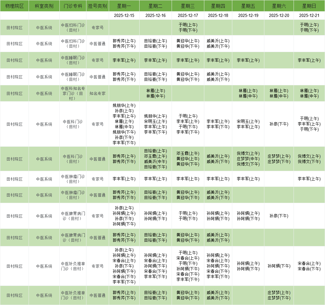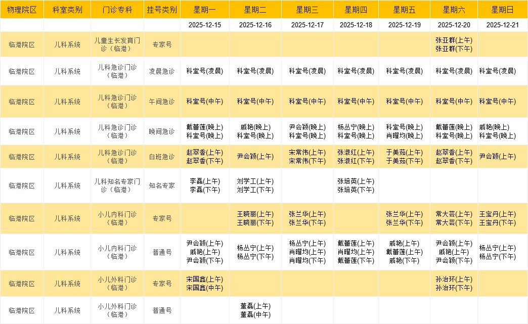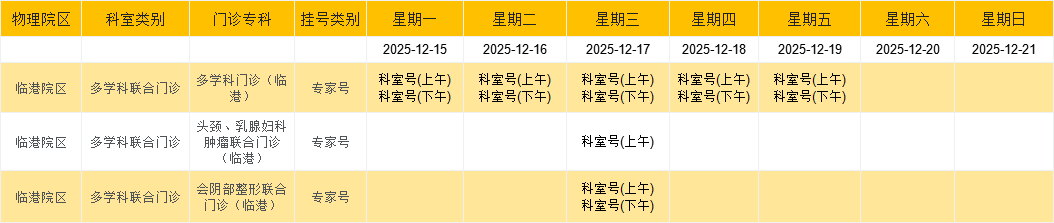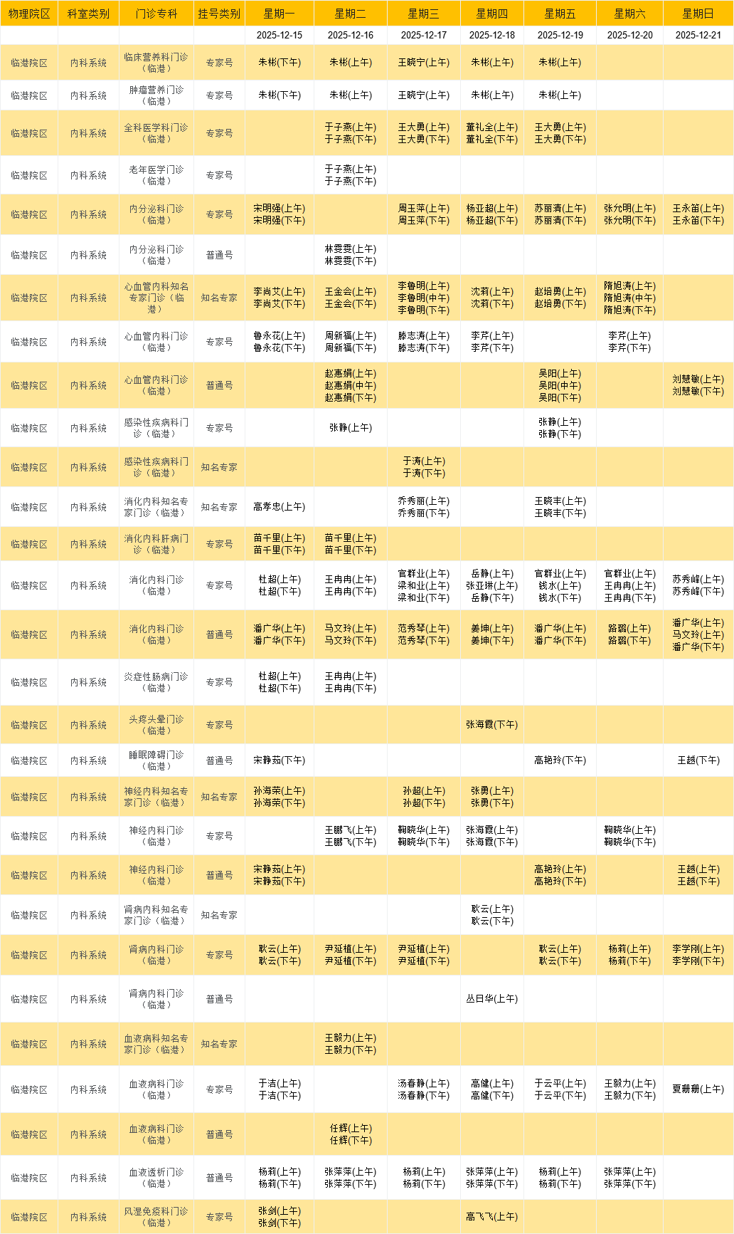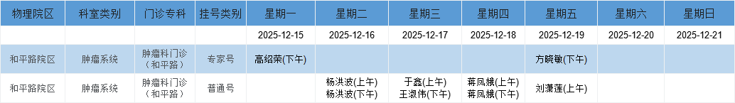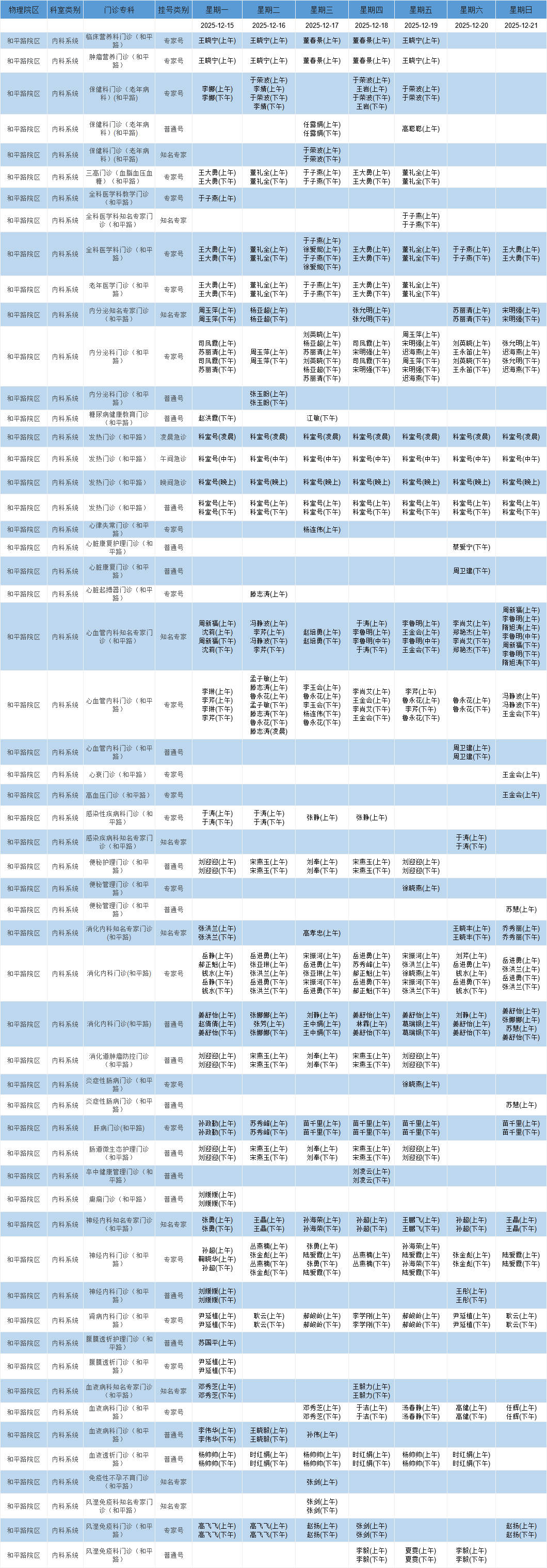 和平路院区心理、皮肤、医疗美容系统门诊排班表
