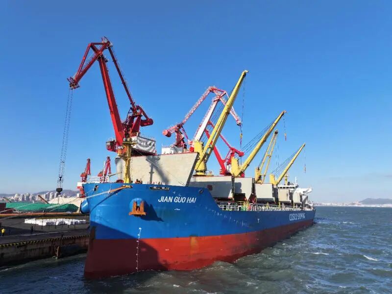 Hi威海客户端讯 2025年12月17日,威海至安哥拉件杂货航线成功开通。此次首航船舶在威海港装载5600多件袋装货物,国内完成全部装货作业后,将直航安哥拉罗安达港。
