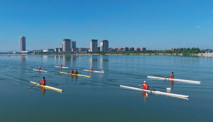 水上项目训练基地由威海市体育局与南海新区合作共建,通过赛事举办推广、体育产业培育、训练教学开展等举措,推动威海水上项目提质升级,全力打造独具特色的水上项目赛事品牌。基地整合了南海新区多处优质场地资源,形成了立体化训练布局,南海国际沙滩运动基地南及金海路南端海域作为海岸赛艇专项训练区域,虎口窑特大桥至香水河大桥之间的香水河水域规划为皮划赛艇训练主场,另外设置室内训练及生活保障功能区。依托这些资源,基地以水上项目为核心,推动“体育+文旅+教育”深度融合。一方面整合文化旅游资源,开发特色体育旅游线路与产品,塑造差异化文旅品牌,另一方面培育国家级、国际级竞技体育赛事,同步提升龙舟等群众体育赛事影响力,促进竞技体育、群众体育与体育产业协同发展。同时,基地还将深化体教融合,推动水上项目进校园,建立中小学与市水上项目在招生选材、升学指导等方面的合作机制,完善人才培养体系。
