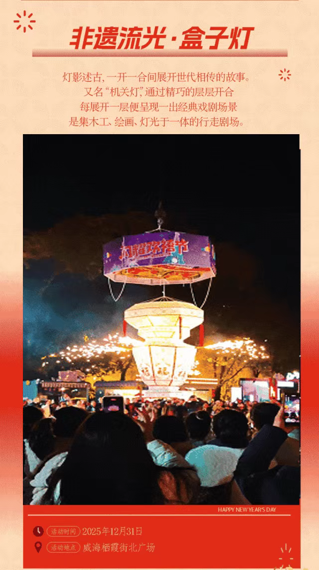 “消费季期间,威高广场、至海港湾、高区九龙汇、华发新天地幸福蓝海影城、居然悦购等商业综合体,也将同步推出跨年晚会、王者荣耀全国比赛威海站、买一送一狂欢购、城市火锅节等融合文商旅体的系列优惠叠加活动,打造多元消费场景,促进消费扩容提质。”市商务局有关负责人介绍。(全媒体新闻中心记者 李文思)