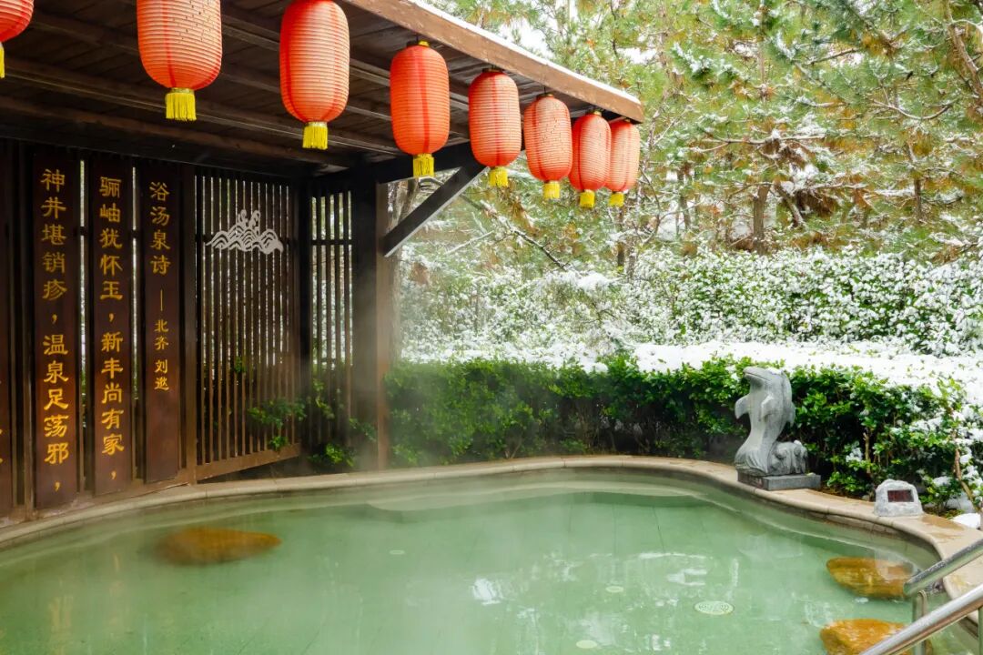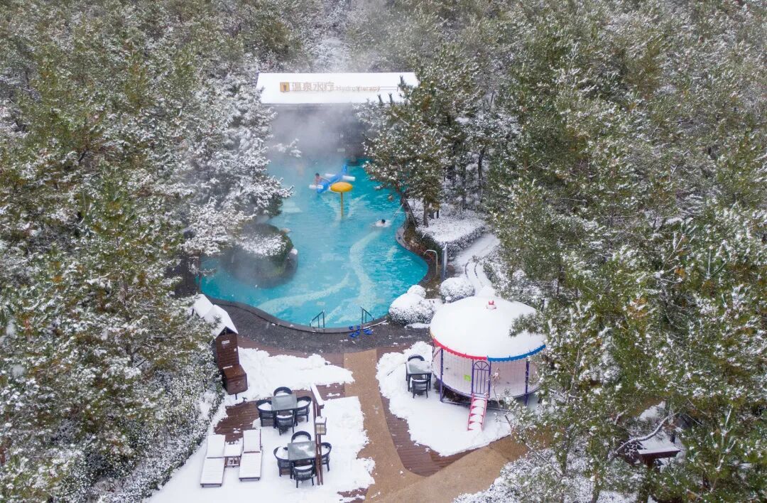 冰火交响曲:在飘雪的森林温泉中浸泡,看热气蒸腾与雪花共舞,是极致浪漫的感官享受。