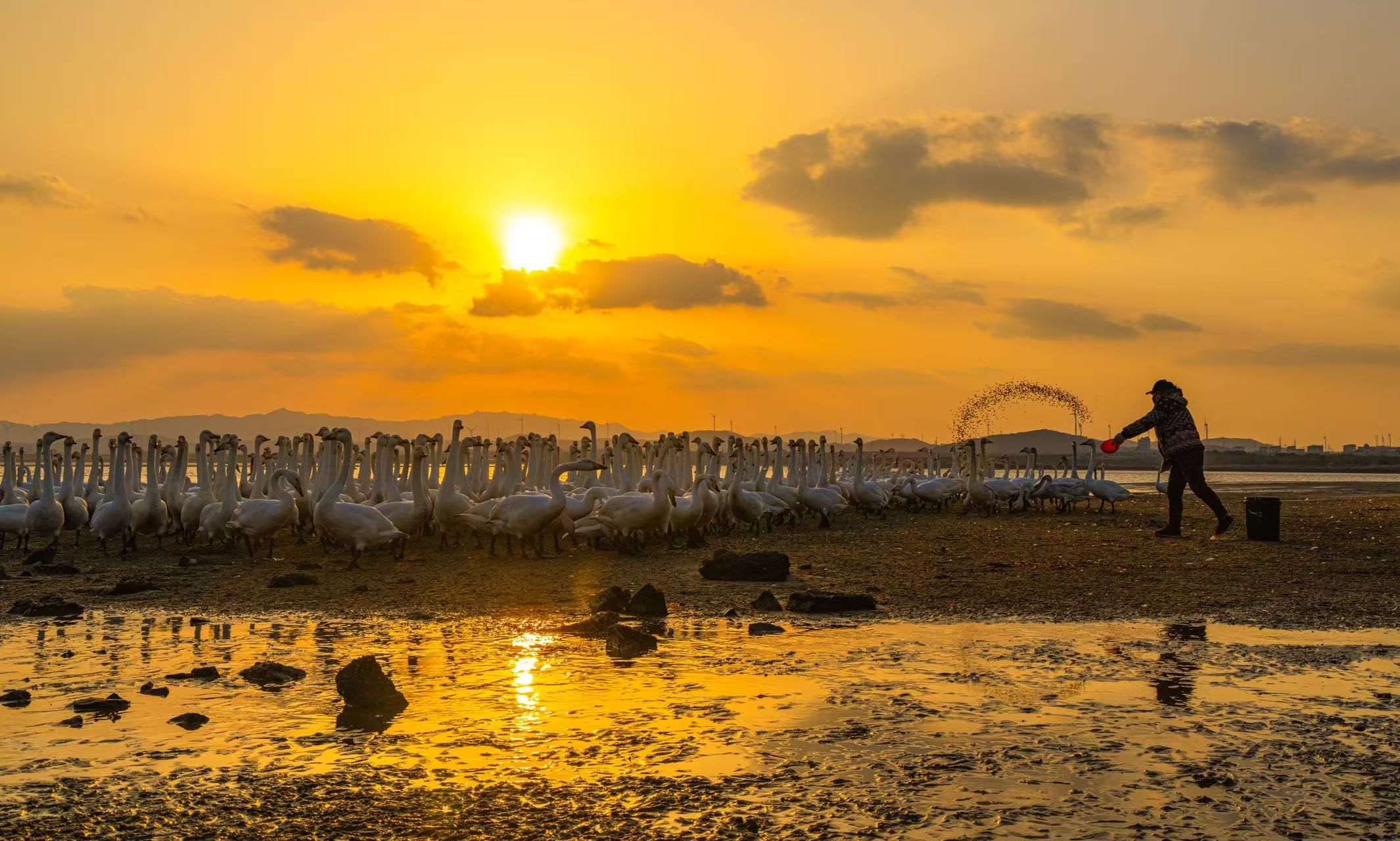 每年11月至次年3月,数千只大天鹅如约而至,将威海的冬日渲染成一场为期五个月的盛大诗会。