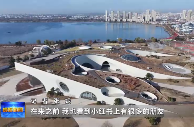 记者张妮:朋友们,这就是我们此行的第一个惊喜——荣成市少年宫。那为什么会选择这里?一方面,它是离荣成站比较近,另一方面,这座建筑本身就是一个巨大的艺术品,也是拍照打卡的绝佳地。在来之前,有很多的朋友,他们也在这里拍出了自己的“人生照片”和极简大片,那接下来,咱们也来看看这里是否出片吧!出发。