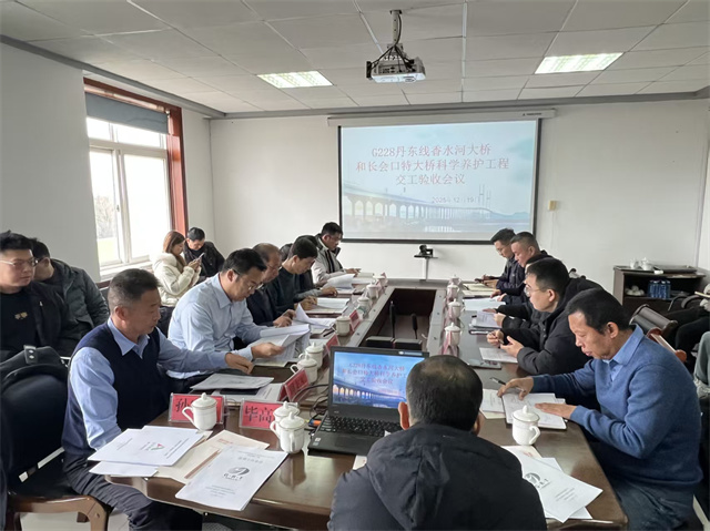 近日,威海市公路发展中心召开G228丹东线香水河大桥和长会口特大桥科学养护工程交工验收会议,相关人员组成验收委员会,对项目进行验收评定,设计、监理、施工、检测单位有关人员参与验收。