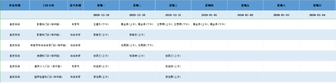 和平路院区医技系统门诊排班表