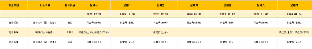 临港院区急诊系统门诊排班表