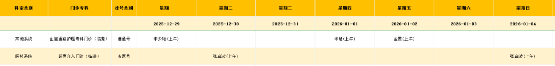 其他系统门诊排班表