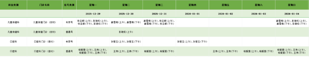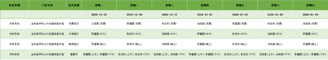 中医系统门诊排班表