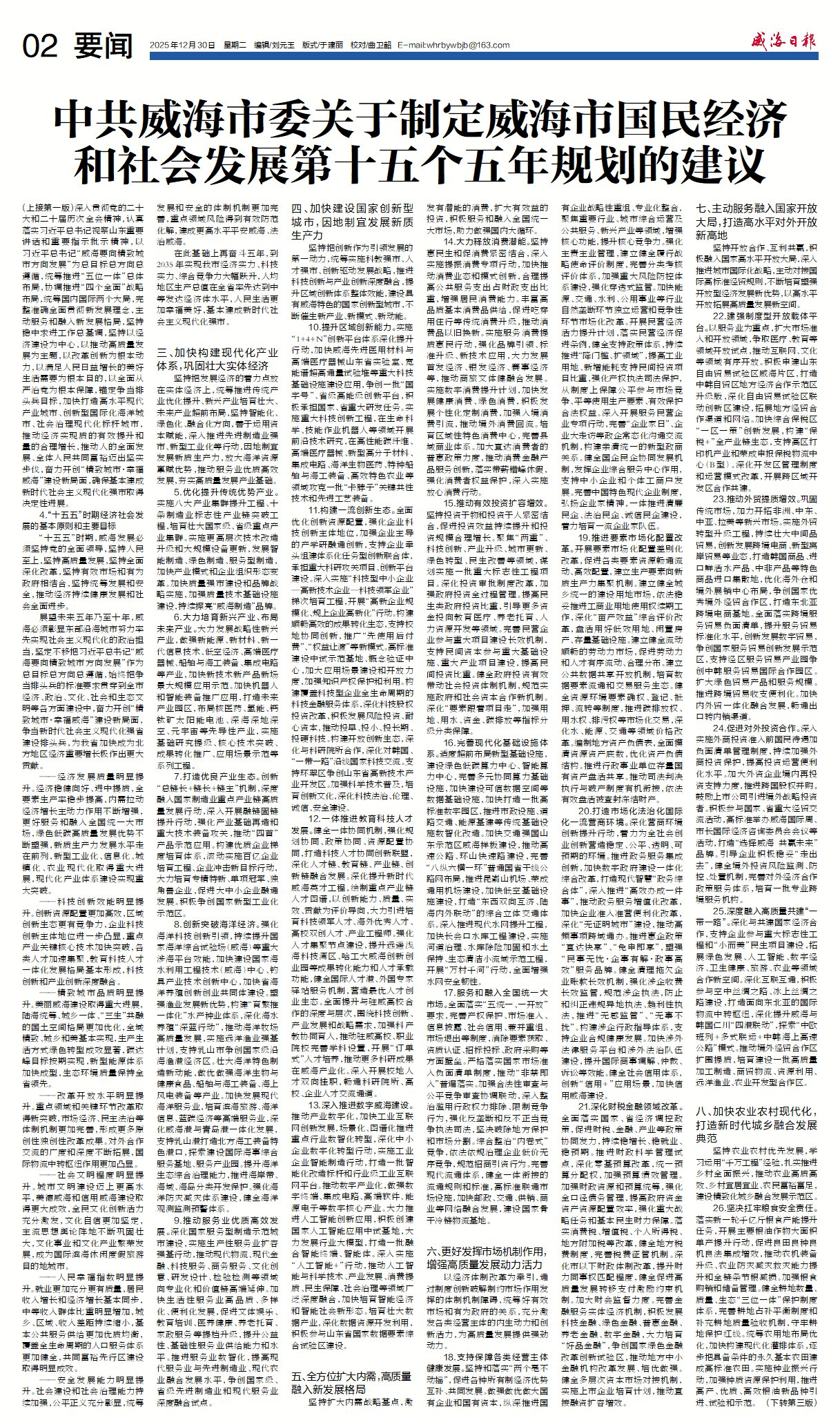 威海日报 2025-12-30
