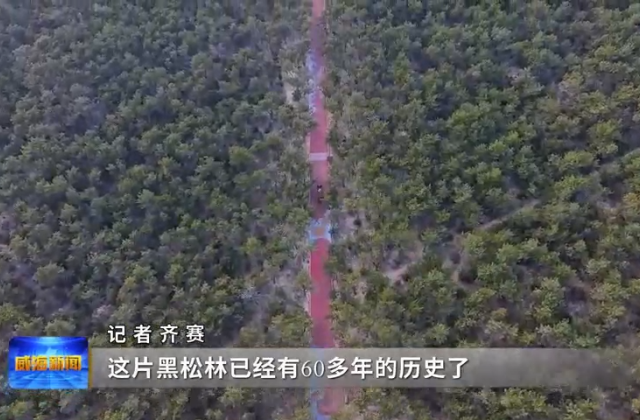 齐赛:朋友们,如果可以的话,我真想把这儿的空气隔空投送给你们,这里就是天然氧吧——万亩松林,这片黑松林已经有60多年的历史了,东西长6.5公里,南北宽1公里,你们看,阳光透过树枝投下的光影,真是太美了,这种冬天的静谧太治愈了。