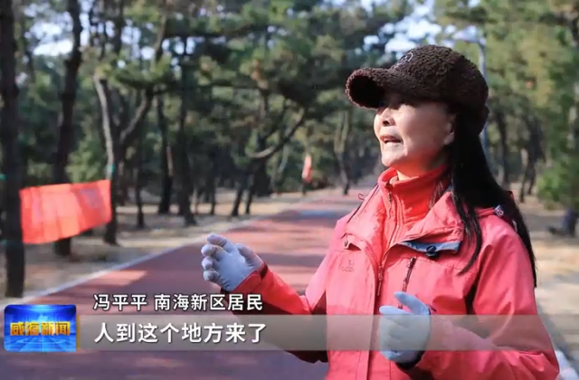 南海新区居民冯平平说,人到这个地方来了,那个空气一直呼吸到丹田,可以呼吸下来,挺通透的,人感觉挺舒服,所以每天过来走一走。