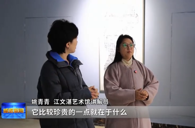 江文湛艺术馆讲解员姚青青说,它的名字叫《山河堰落成记》,全文是137个字,可以说是古代的一篇政府官文,它这个原址是在陕西汉中,就是这么大,原拓。拓片又被称之为“黑老虎”,它比较珍贵的一点就在于,比如说在明代的时候拓了一个,然后原作毁掉了其中一个角,那就证明这个拓是独一无二的。