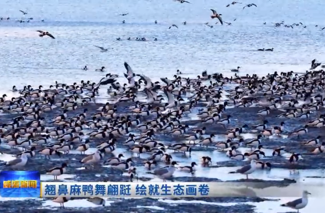Hi威海客户端讯 冬日时节,南海新区五垒岛湾迎来了一群灵动的“客人”——成群的翘鼻麻鸭,为海湾增添了勃勃生机。碧蓝的海面上,翘鼻麻鸭振翅翱翔划过天空。黑白相间的羽色,在蓝天碧水的映衬下格外醒目,与蔚蓝大海构成了一幅独具韵味的冬日生态图景。(全媒体新闻中心记者 于嘉霖)