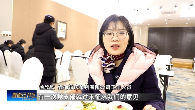 经开区政法工作部“两企三新”党建工作科科长秦飞说:“很多都是一些体量比较小的企业,你想让他们单独成立党支部的话,一般的是不满足条件。这样的话我们就想成立一种区域性的党支部,然后楼宇也是咱们企业和员工聚集的地方,我们通过党建把他们凝聚起来。”