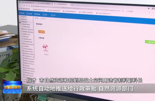 在殷才的电脑中,记者看到,全新搭建的“建设用地审批系统”已经成功整合了林地许可、林地定额、用地、用海审批四大业务,建立起“统一收件、并联审查、限时办结”工作机制,实现“一系统统管、一平台通办”。正是这样“一站式”的服务保障,让S302成威线皇冠街道至张村镇段改建工程成为了全省第一个实现用地用林用草联动审批的项目。