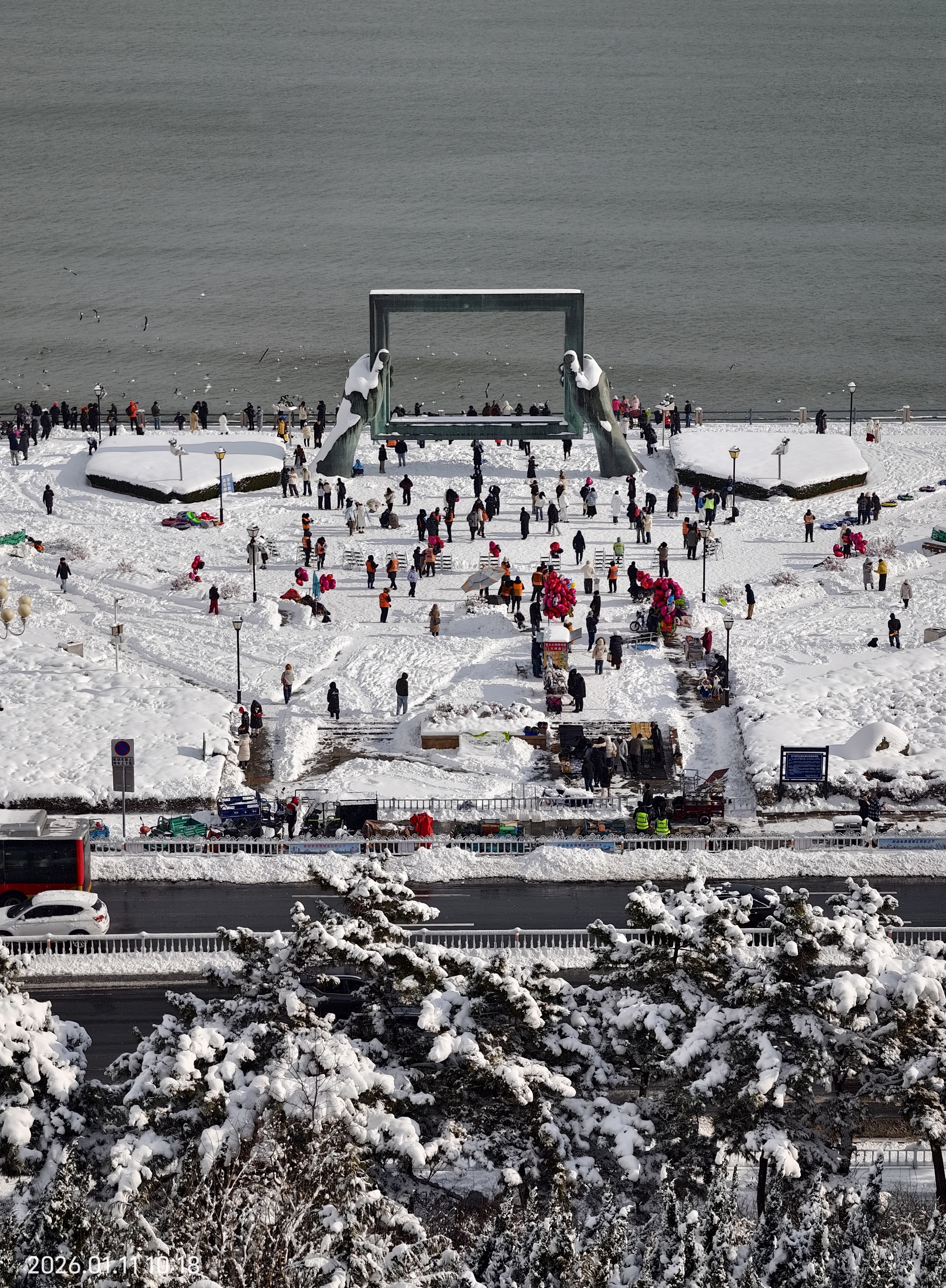 从幸福门的地标建筑到环海路的冰涛奇观,从灯塔附近的缥缈雾凇到市区的静谧街景,摄影者们多角度的创作,全景式展现了雪后威海山海相依的壮丽与诗意。这些作品不仅定格了自然的鬼斧神工,也捕捉到了市民赏雪的生动瞬间,在寒冷冬日传递出温暖的城市气息。