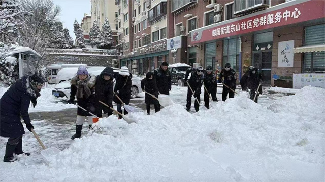 基层社区的暖心清雪行动同步上演。鲸园街道提前为各社区配齐铁锹、扫帚、推雪板等手动清雪工具,确保机械作业与人工清扫无缝衔接;西苑街道汇安社区的清雪“总动员”一呼百应;竹岛街道统筹调配人工与机械力量,联动多方力量协同作战,全面开展高效清雪除冰行动,用速度与温度守护辖区平安。