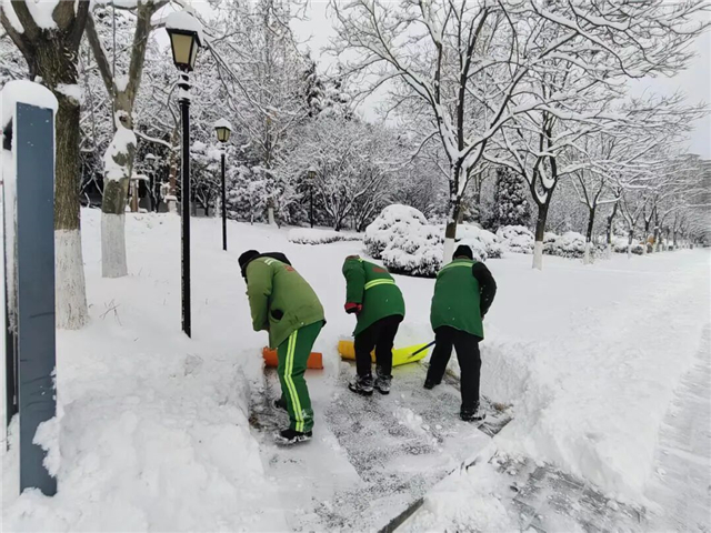 各社区工作人员与网格员闻雪而动,成为清雪一线的“先锋队”和“主力军”。各物业服务企业迅速响应,切实履行小区清雪的重要职责。根据街道与社区的统筹安排,物业人员操作专业设备与人工清扫相结合,集中力量对小区内主要通行道路、停车场出入口、垃圾投放点周边等进行彻底清理,并播撒融雪剂防止结冰,全力保障辖区运行安全有序,居民生活温暖安心。(来源:“威海高新区发布”微信公众号)