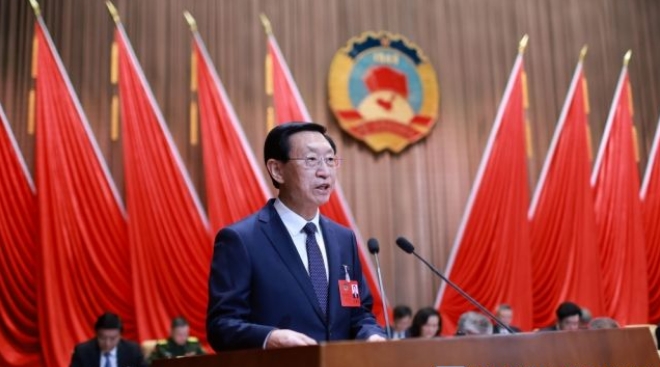 林强代表政协第十四届威海市委员会常务委员会,作常委会工作报告。