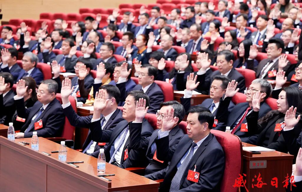 大会还依次举手表决通过了威海市人民代表大会议事规则,以及威海市第十八届人民代表大会第六次会议关于政府工作报告的决议、关于威海市国民经济和社会发展第十五个五年规划纲要的决议、关于威海市2025年国民经济和社会发展计划执行情况与2026年国民经济和社会发展计划的决议、关于威海市和市级2025年预算执行情况与2026年预算的决议、关于威海市人民代表大会常务委员会工作报告的决议、关于威海市中级人民法院工作报告的决议、关于威海市人民检察院工作报告的决议。