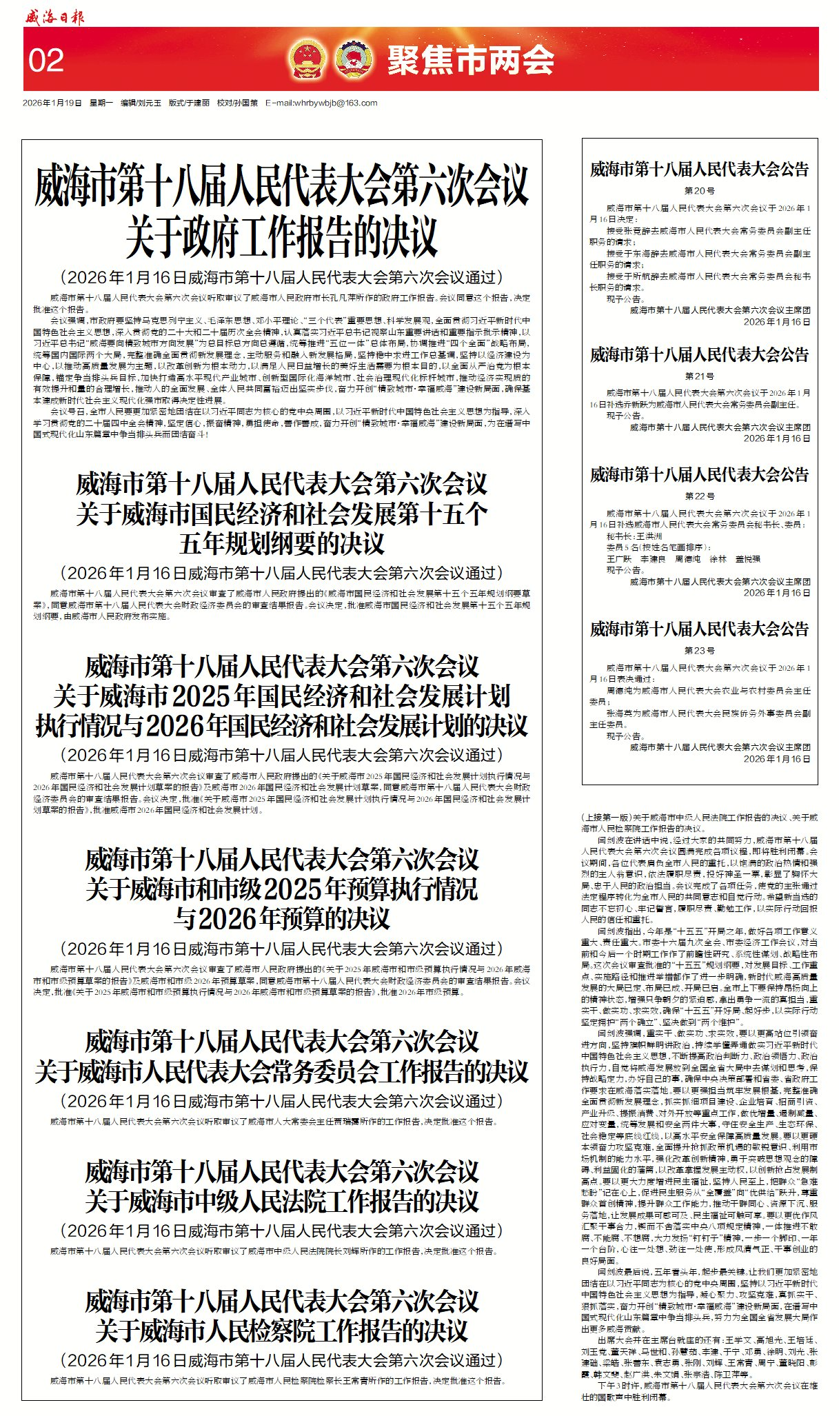 威海日报 2026-01-19