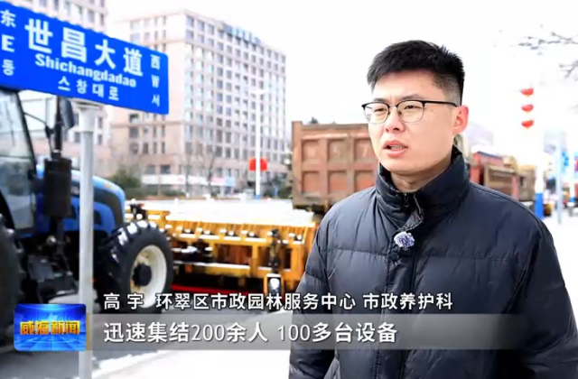 环翠区市政园林服务中心市政养护科高宇表示,迅速集结200余人、100多台设备,在值守点24小时待命,同时也在一些隧道口、还有一些陡坡放置了临时应急物资储备点,遇到积雪和冰冻这些隐患能够确保及时响应。