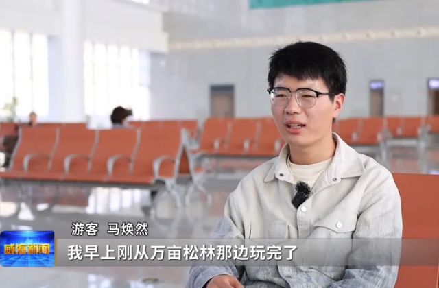 游客马焕然说,早上刚从万亩松林那边玩完了,然后来到这里坐,准备坐车回家了,就很方便。